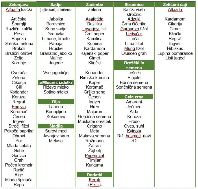POMLADNI NAKUPOVALNI SEZNAM: KAPHA (velja od marca do junija)